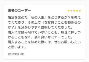 アラフォー女性のマイホームセミナーは3枠、団地投資コンサル説明会は1枠空きがございます。