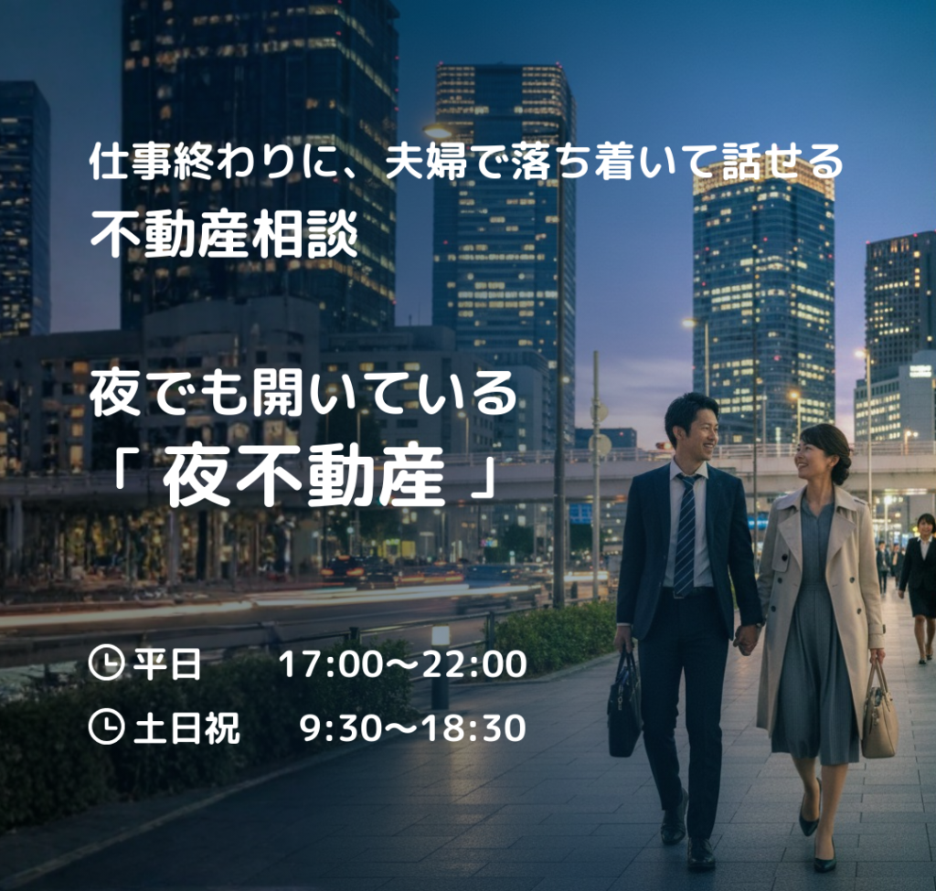 夜でも昼間と同じ不動産のプロが対応し、サービス内容・サポート体制に違いはありません。